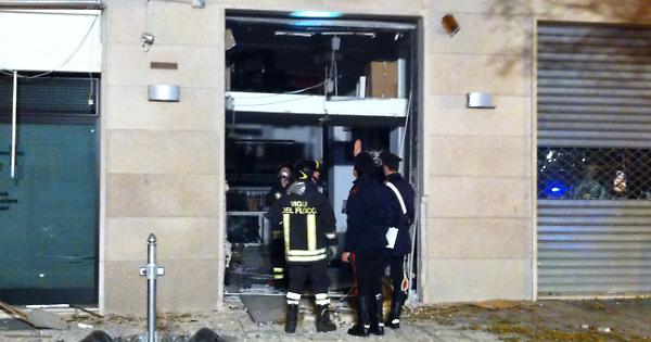 La saracinesca del negozio "Bibop Fascion" fatta esplodere