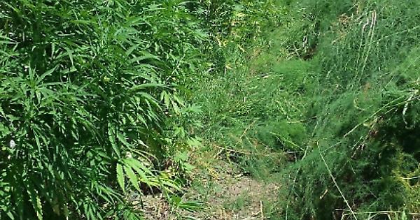 Piantagione di canapa indiana coltivata in un’area agricola, nello stesso comune, a ridosso della linea ferroviaria. Le piante - ben 185, molte delle quali alte circa due metri, già in fioritura e pronte alla estirpazione - erano abilmente occultate alla vista da una fitta vegetazione di asparagi e da una recinzione di pali in cemento. La coltivazione illegale - quantificata in circa 70 kg di steli e foglie
