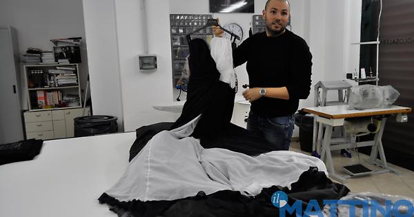 Lo stilista foggiano ci mostra i vestiti indossati dalla cantante al Festival di Sanremo, noi ne approfittiamo per sbirciare nella "pentola magica" della sua creatività, al villaggio artigiani, tra bozzetti, modelli, macchine per cucire...