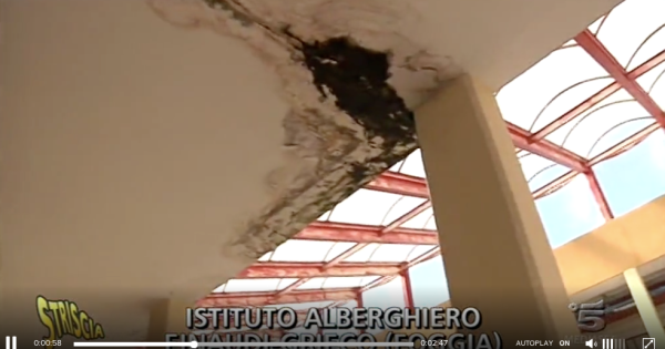 Le immagini che vedete sono tratte dal servizio di Striscia la notizia, in cui il preside Antonio Soldo lancia un accorato appello al presidente del Consiglio Renzi e ai ministri del suo governo perché si intervenga a risolvere la disastrosa situazione di un istituto frequentato da oltre mille studenti che studiano solo in teoria le materie tecniche dell'alberghiero per cui dovrebbero avere strumenti e laboratori che sognano da anni.
