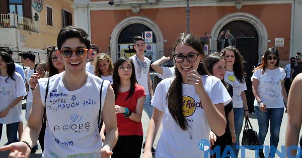 Flash mob degli istituti scolastici di Cerignola, San Severo e San Marco in Lamis, incontratisi con il progetto "Agor@", per richiamare l'attenzione sulla trasparenza delle istituzioni, sui valori della partecipazione, sul contrasto al femminicidio. Le FOTO