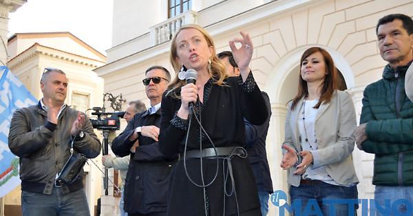 La presidente nazionale di Fratelli d'Italia - An ha tenuto un comizio in piazza Cesare Battisti, vicino al teatro Giordano, seguita ed applaudita da circa 200 persone