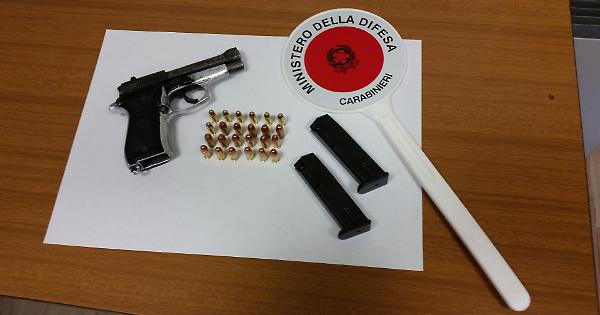 I Carabinieri hanno effettuato, all’alba, una perquisizione domiciliare a carico del giovane che da fonti investigative risulta essere vicino agli ambienti criminali sanseveresi. In casa i militari hanno rinvenuto nella camera da letto, all’interno di un cassetto del comodino, una pistola automatica marca “Beretta” modello 380 Short, calibro 9, con matricola abrasa. L’arma, risultata ben oliata e perfettamente funzionante, presentava un caricatore inserito con 13 proiettili più un ulteriore colpo in canna, quindi pronta a sparare. Unitamente all’arma veniva rinvenuto anche un secondo caricatore, uguale al primo, contenente ulteriori 11 proiettili, per un totale di 25 munizioni.