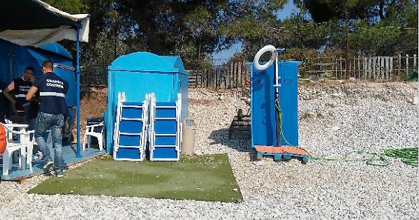 Durante l'intervento, i militari hanno provveduto, su un tratto di spiaggia libera, nella zona immediatamente antistante un chiosco-bar regolarmente autorizzato, al sequestro di diverse basi di ombrellone, ben piantate nell’arenile, costituite da piattaforme in cemento.
