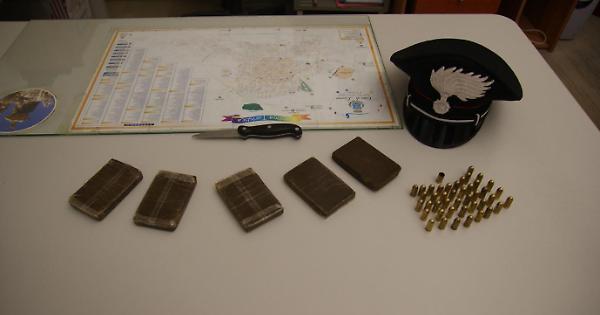Occultato sotto il sedile lato conducente, i militari hanno rinvenuto un involucro in cellophane contenente al suo interno 5 panetti già confezionati di hashish, per un quantitativo complessivo di 500 grammi circa. Le operazioni di ricerca sono state estese all’abitazione del giovane dove sono state recuperate, in camera da letto, 42 cartucce e un bossolo esploso calibro 380, detenuti illegalmente. Pepe, pertanto, è stato dichiarato in stato di arresto per i reati di detenzione illecita finalizzata allo spaccio di sostanze stupefacente, detenzione abusiva di munizioni e guida senza patente.