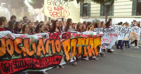 Nel mirino c'è la "Buona Scuola" di Matteo Renzi, ma poi finiscono col mischiare le rivendicazioni di «accedere gratuitamente all’istruzione, abbattendo i costi di libri di testo e trasporti, entrare in cinema, teatri e biblioteche liberamente, poter studiare in scuole sicure e con spazi adeguati» con le ideologie partitiche; ed eccoli sfilare al grido: «Siamo tutti antifascisti!»