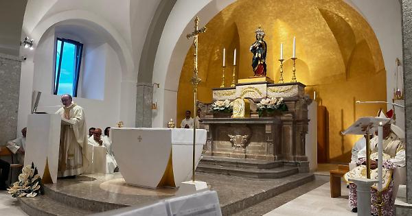AVIGLIANO- Il 3 luglio i fedeli della Madonna del Monte Carmelo si sono riuniti per la riapertura al culto del Santuario di Santa Maria del Carmine, con i conseguenti riti della dedicazione del nuovo altare e benedizione della nuova sede presidenziale e del nuovo ambone. Le campane hanno suonato a lungo, fendendo l’aria tersa di mezza estate come un richiamo antico. Il rito è stato presieduto da monsignor Davide Carbonaro, arcivescovo metropolita di Potenza-Muro Lucano-Marsico Nuovo e presidente della Conferenza episcopale lucana. Il rito, ricco di simbolismi, si è aperto con il solenne ingresso nella chiesa, la benedizione dell’acqua e l’aspersione della chiesa edificio e della chiesa popolo; alla liturgia della parola è seguita la dedicazione e l’unzione con olio crismale della chiesa e dell’altare, l’incensazione di tutto l’ambiente è stata poi seguita dall’illuminazione di tutta l’aula liturgica. Gli interventi strutturali sono stati pensati con il duplice scopo di migliorare la fruizione del Santuario (è prevista infatti l’installazione di un ascensore) – da sempre luogo di pellegrinaggio – ed esaltarne la spiritualità. Il cuore dell’intervento è stato l’altare, bianco al centro dell’aula liturgica, sormontato dalle volte dipinte in color oro brillante. L’ambone, ugualmente bianco con dettagli in foglia oro, si trova alla sinistra dell’altare, mentre simmetricamente, a destra, si trova la sede presidenziale. Al centro dell’abside, il Tabernacolo, decorato in mosaico, con inserti in ottone che raffigurano spighe di grano. Il basamento della statua della Vergine è stato impreziosito da un mosaico con un ramoscello in madreperla. Particolare attenzione è stata riservata anche alla pavimentazione. Il percorso verso l’altare è evidenziato da una fascia centrale in Perlato Lucano scandita da quattro Flos Carmeli, fiori intarsiati in marmo policromo. Gli interventi sono stati illustrati dall’architetto sr. Mariella Mascitelli e dall’ingegnere sr. M. Josefina Saladdino. Presenti alla celebrazione il parroco don Mimmo Lorusso, numerosi sacerdoti e le più alte cariche istituzionali, tra le quali il governatore Vito Bardi, il presidente del Consiglio regionale Marcello Pittella, il sindaco di Avigliano Giuseppe Mecca e il vicesindaco Marianna Claps. È stato un giorno speciale: non solo per la restituzione del luogo sacro, ma per il sigillo rinnovato di una devozione che ad Avigliano non conosce tempo. La celebrazione è stata animata dai soprani Milena L’Amico e Marialucia Nolè.