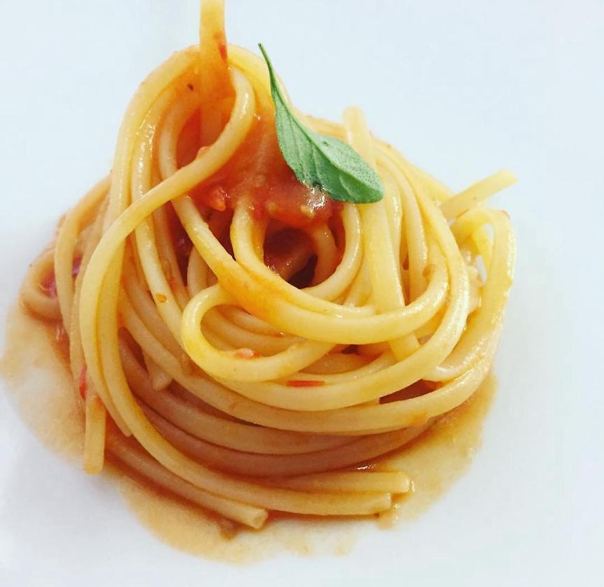 «Gli spaghetti al pomodoro fresco, che mi preparo quando mi voglio gratificare. Però non esiste più il mio piatto preferito, delle penne sempre al pomodoro fresco, le mangiavo all'asilo. Il profumo e il sapore di quella pasta non li ho ritrovati più. A proposito degli spaghetti ti racconto una cosa. Andai da Gennaro Esposito per la sua "Festa a Vico" (l'evento enogastronomico che celebra la cucina e i prodotti del territorio con la partecipazione di cuochi stellati) e tornai con una shopper della Voiello, che aveva prodotto per la prima volta gli spaghetti quadrati. Tornata a casa mi chiesi come avrei potuto usarli e nacquero i miei spaghetti alici e briciole, che è per me lo scarpariello del mare. Quanti ne ho preparati.»
