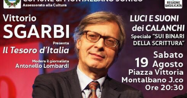 Cresce l'attesa a Montalbano Jonico per la serata conclusiva della seconda edizione di “Sui binari della scrittura”, la rassegna letteraria che sabato alle 20.30 nella centralissima piazza Vittoria ospiterà il noto critico e storico dell'arte, Vittorio Sgarbi. L'importante kermesse letteraria ideata dal giornalista Antonello Lombardi e promossa dal Comune di Montalbano, Assessorato alla Cultura, è riuscita in soli due anni ad imporsi come evento di punta dell'estate montalbanese rappresentando, altresì, un punto di riferimento culturale a livello regionale.
