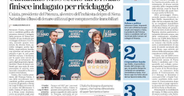 «È sicuramente sorprendente la tempestività con cui una notizia vecchia di due anni venga riportata oggi, da tutti i media nazionali, a meno di dieci giorni dal voto. A tal proposito devo specificare anche che la notizia relativa alla vendita del ristorante il Campo alla cooperativa La Cascina è falsa, perché ancora oggi quel ristorante è di mia proprietà». A muso duro Salvatore Caiata attacca i giornali che hanno pubblicato la notizia del suo coinvolgimento in un'inchiesta del 2016 per riciclaggio.