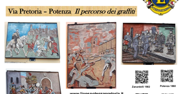 POTENZA - Ieri sera nella sala dell'Arco del palazzo di città il Lions club Potenza Pretoria (Distretto 108ya Governatore Paolo Gattola) ha presentato la guida dei graffiti, distribuita ai presenti. L'iniziativa è stata organizzata dalla presidente del Club Sonia Maugeri e dal responsabile del service Rocco D'Amato (foto gallery di Gianfranco Vaglio). Hanno partecipato anche il sindaco di Potenza Dario De Luca, la presidente di Bcc Basilicata Teresa Fiordelisi e il direttore generale Giorgio Costantino. Il Lions club Potenza Pretoria opera da sempre per la valorizzazione dell’identità Potentina e Lucana e per la promozione dei talenti della propria Comunità, nonché per rispondere concretamente alle istanze sociali della città di Potenza, e non solo. Il Club, a seguito di un “concorso di idee” per la valorizzazione della storia, del paesaggio, degli artisti, delle innovazioni, ha donato alla città di Potenza, arricchendone il centro storico e il patrimonio artistico, quattro bellissimi graffiti. Le opere raffigurano momenti salienti della storia cittadina, e sono stati realizzati dall’artista Franco Corbisiero, della Scuola di Montemurro. Grazie al concorso dalla Bcc Basilicata, sempre attenta ai bisogni del territorio, il Club è riuscito, inoltre, a realizzare la ”Guida dei graffiti” cartacea e anche online, con Qcode collocati vicino ad ogni opera, riconoscibili da smartphone e simili collegati ad un apposito sito web contenente notizie storiche e realizzative su ciascuna opera. «È con personale orgoglio e sempre meraviglia - ha scritto nella prefazione del volume la presidente del Club, avvocato Sonia Maugeri - che ogni volta ammiro tali capolavori e ringrazio, a nome del L.C. Potenza Pretoria e mio, la Bcc Basilicata, che ha risposto generosamente alla richiesta di un contributo per completare questo progetto di arte, storia e civismo». «In linea con i principi ispiratori del credito cooperativo, Bcc Basilicata - ha scritto nel suo intervento che accompagna la guida la presidente di Bcc Basilicata Teresa Fiordelisi - non poteva perdere l'occasione offerta dall'iniziativa del Lions club Potenza Pretoria, volta a valorizzare il salotto buono della città capoluogo tramite il recupero della sua memoria storica e identitaria».