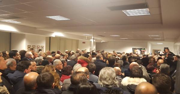 In tanti sono rimasti fuori in attesa di poter entrare. Coda lunga per ascoltare l'apertura della campagna elettorale del sottosegretario