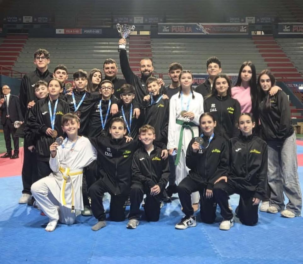 Lo scorso mese una prestazione magistrale ha portato il Centro Taekwondo Foggia al terzo posto nella classifica generale per società al Campionato interregionale Puglia, svoltosi al Palaflorio di Bari, su oltre 60 società partecipanti. Si tratta della conferma di una posizione conquistata nella disciplina del Taekwondo che consolida, competizione dopo competizione, il Team Smiraglia tra le migliori realtà sportive del panorama nazionale. Un bottino di medaglie che rende merito al lavoro svolto e applaude a coloro che le hanno ottenute. 9 quelle conquistate a Bari: sono saliti sul gradino più alto del podio Padalino Diego, Laccetti Mariangela, Frascaria Mattia e Accettulli Nicole, 3 preziosi argenti sono andati a Laccetti Paolo, Gentile Antonio e Nota Andrea mentre i 2 bronzi li hanno conquistati Rossi Francesco e Magistro Marilù. Questi adolescenti fanno parte della categoria Cadetti, allenati dal maestro Giuliano Smiraglia, che va dai 12 ai 14 anni, un'età che molti definiscono complessa, di ribellione, di intensità emotiva a volte incontrollata, una fase che può vedere il sorgere di problemi individuali e di relazione ma tutti sanno che lo sport è l'arma vincente, un toccasana per molte forme di disagio giovanile, un percorso di vita da incentivare. I ragazzi del team Smiraglia vivono lo sport con dedizione e impegno ed il confronto come rispetto e accettazione; non sono soli, hanno il supporto dei loro compagni, del loro team e di tutto lo staff di tecnici dedicati. Oltre ai maestri infatti, sono presenza costante i due allenatori Giuseppe Frascaria e Vito Battiante che seguono ogni allenamento, ogni gara coadiuvando i maestri sul campo di gara e supportando gli atleti in ogni esigenza...non solo una squadra ma una famiglia! Tanto da far meritare al Maestro Ugo Smiraglia, agli atleti Alessandro Mgistro e Sabrina Frascaria un premio speciale nell'Aula Trecca dell'Ordine dei medici di Foggia per i loro risultati nell'anno 2025 da parte dell'Ansmes Foggia in un pomeriggio dedicato alle Eccellenze dello sport di Capitanata.