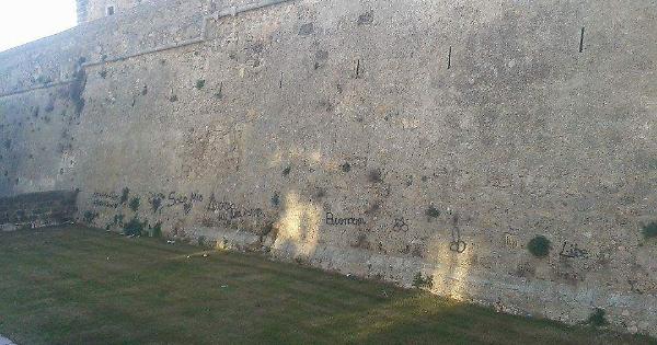 Sconosciuti i "poeti" di questo vandalismo sconsiderato. Chi deturpa il proprio patrimonio artistico non ha rispetto per la storia della propria città.