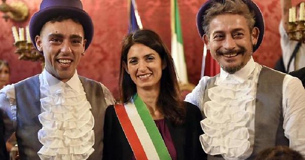 "Benvenuti, vi vedo emozionatissimi e giustamente. E' un momento importante, una grande emozione nasce una nuova coppia e una famiglia", ha detto la Raggi. Che ha aggiunto "Vi auguro una unione lunga e divertente potrebbe avere qualche scossone ma vi auguro di superare gli ostacoli che la vita ci pone davanti. Questa è la sfida che vi accingete ad intraprendere, andate avanti a testa alta con forza e divertitevi, il segreto è divertirsi. Vi auguro una vita intensa" ha concluso la sindaca capitolina prima di leggere gli articoli del codice così come previsto dalla procedura.