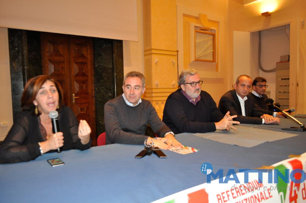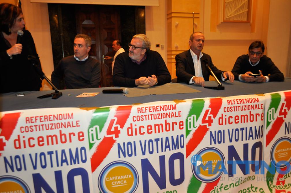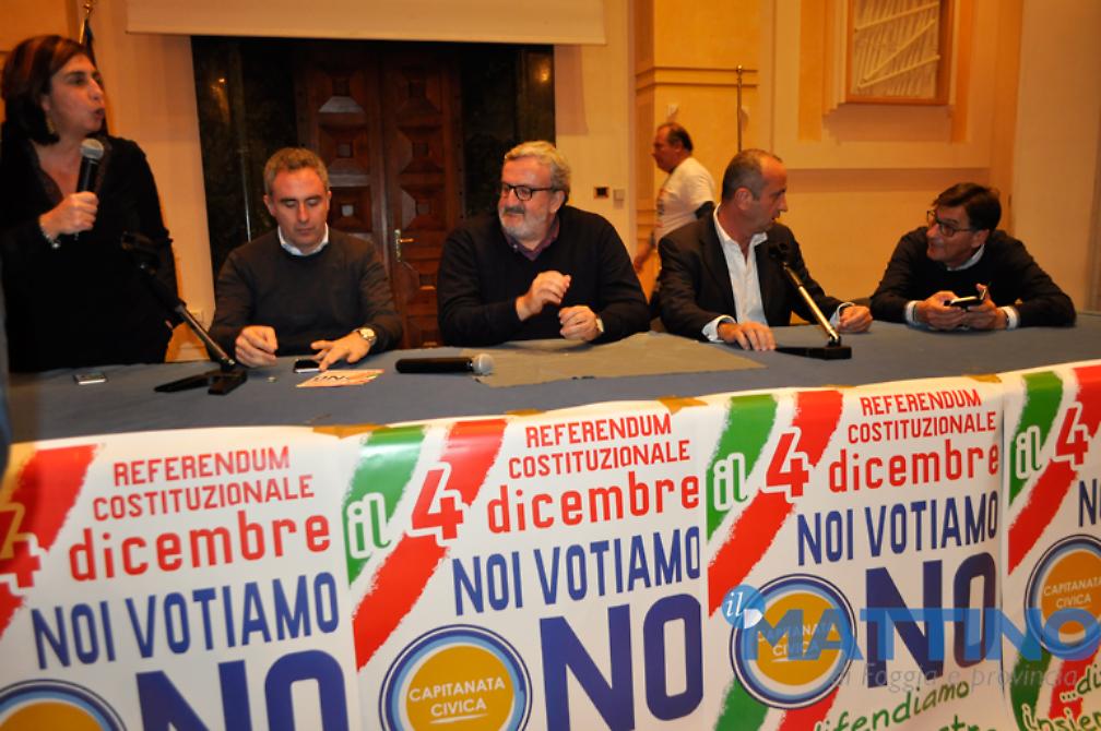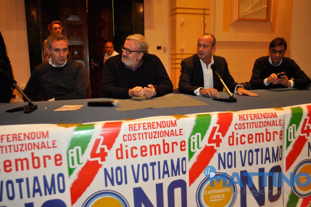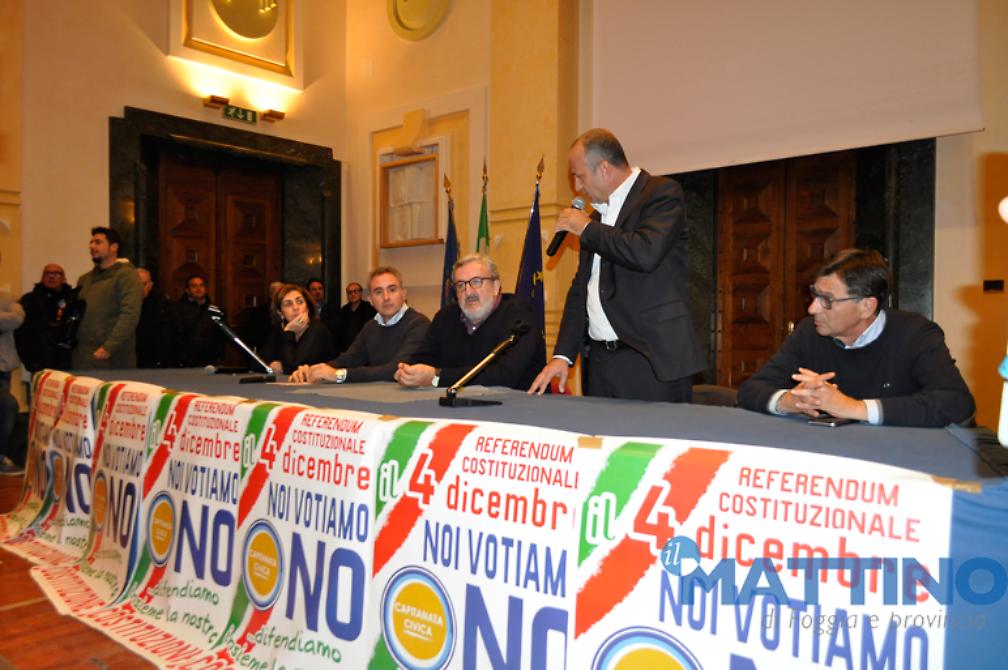 «La Costituzione vigente è il più bel progetto di Paese che sia mai stato concepito in Italia. La Costituzione vigente ha autori che non sono paragonabili con quelli che vogliono cambiarla. La Costituzione vigente ha una radice dolcissima e commovente che l'altra non avrà mai, anche solo considerando che il Parlamento che ha approvato di modificarla è stato dichiarato incostituzionale dalla Corte Costituzionale perché ha violato il principio della sovranità, la ragione stessa dell'esistenza del Parlamento: il premio di maggioranza è talmente alto da snaturare la connessione tra l'espressione del voto e la rappresentanza, questo ha detto la Corte Costituzionale. Significa che l'articolo 138, quello che ha consentito di cambiarla, è forzato da un grimaldello illegittimo», ha detto, tra l'altro, il Presidente della Regione Puglia all'incontro organizzato dal vice presidente della Provincia di Foggia, Rosario Cusmai, da Raffaele Vigilante del movimento "NoTriv", dall'assessore regionale alle Politiche agricole Leo Di Gioia, dopo un incontro tenuto nel pomeriggio a Bovino con i sindaci dei Monti dauni. Attaccando chiaramente l'ex presidente della Repubblica Giorgio Napolitano, Emiliano ha incalzato: «Tutto questo cambiamento si vuole sulla base dell'invito di chi avrebbe dovuto fare il garante della Costituzione: il presidente della Repubblica non può spingere nessuno al cambiamento della Costituzione, deve essere un garante fermo, immobile, come il Presidente Mattarella che non muove un muscolo perché quello è il ruolo del Presidente della Repubblica. Se, invece, un presidente della Repubblica raccoglie l'istigazione al cambiamento e la rivolge ad un Parlamento incostituzionale, in una situazione di grande emergenza, la vittoria del No è un modo per dare una mano anche a tutti coloro che non hanno riflettuto bene su quello che sto dicendo. Provate a immaginare di tenere sospesa nella storia d'Italia l'idea che la Costituzione vigente sia sta cambiata, su istigazione di chi avrebbe dovuto custodirla, da parte di un Parlamento incostituzionale. Accettare di cambiare la Costituzione in modo incostituzionale è una follia che non possiamo permetterci».