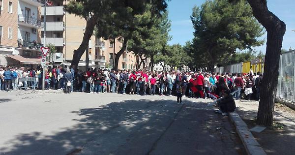 File incredibili e ressa ai cancelli dello stadio per assistere alla partita che già oggi può decidere la promozione dei rossoneri in serie "B" con tre turni di anticipo, se i Satanelli battono gli avversari e il Lecce perde a Matera