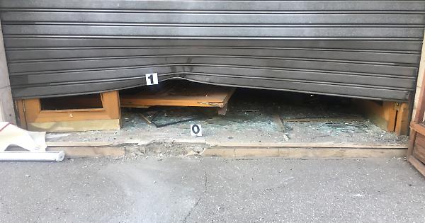 La violentissima esplosione ha divelto la saracinesca, distrutto l'insegna luminosa e parte degli arredi interni