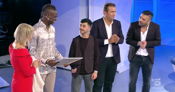 «Lo vedi, Mario: questo è mio fratello Gabriele. Ha appena preso la patente», ha detto Amedeo all'inizio della comparsata dalla De Filippi. È prima di arrivare a chiedere il dono dell'auto al campione, una serie di gag divertentissima, in cui i due comici foggiani hanno offerto di tutto a Mario Balotelli: un santino di Padre Pio «che, oltre a proteggere durante il viaggio, emette anche una luce che non fa vedere la targa dell'auto agli autovelox»; una «zia zitella di Foggia vergine che con 700 euro al mese la puoi mantenere»; una canestra di cozze acide «che quando le mangi ti fanno venire l'epatite al fegato che ingiallendo ti scurisce il nero, diventi più bianco e puoi finalmente essere il capitano della nazionale»; un ritratto di Matteo Salvini con tanto di dedica: «al primo di colore che ha lasciato il Paese senza essere accompagnato». Tra gli accessori scroccati per l'auto, il cui prezzo è lievitato a 13mila euro, anche un dispositivo per aiutare nella guida Gabriele che ha una disabilità alla mano destra. «Cosa sono 11mila di euro (il costo della utilitaria, ndr) che guadagni 11 milioni l'anno? Proporzionati allo stipendio di un operaio sono 1 euro e 10 che io regalo a quelli come te, ai tuoi fratelli, ai semafori» ha detto Amedeo a Mario Balotelli, che alla fine si è lasciato convincere a firmare il contratto di acquisto al concessionario che era presente in studio.