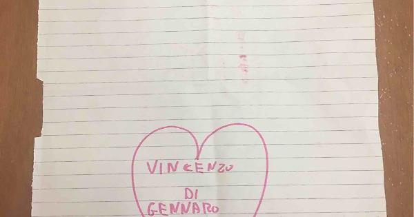 La piccola, di appena otto anni, portando con sé una rosa rossa e la pagina ripiegata di un quaderno di scuola, si è fatta accompagnare dai Carabinieri, al Comando Provinciale di via Guglielmi, e, non appena si è trovata di fronte il militare di servizio, lo ha ringraziato per quanto fanno tutti i Carabinieri e gli ha consegnato sia la rosa che il foglio, spiegando che si trattava di un suo regalo per il Maresciallo Vincenzo Di Gennaro.