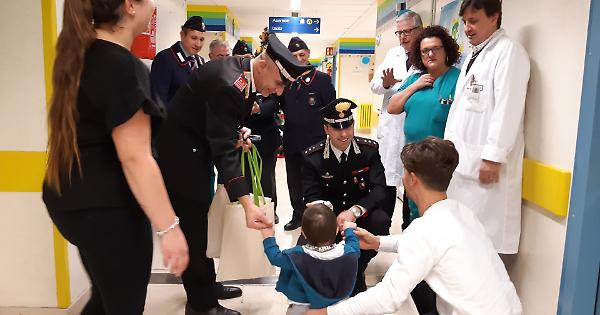 Questa mattina i carabinieri della Compagnia di Cerignola hanno fatto visita al reparto di pediatria dell'ospedale cittadino, portando doni e sorrisi ai bimbi ricoverati. I militari sono stati accompagnati in reparto dal primario, Angelo Acquafredda, per portare doni e qualche momento di sollievo ai piccoli pazienti. Ai bambini e ai loro genitori sono stati consegnati dei gadget in legno realizzati a mano dai carabinieri forestali del Reparto Carabinieri Biodiversità di Foresta Umbra. All’iniziativa, inquadrata nell’ambito delle iniziative sociali del Comando Provinciale Carabinieri di Foggia, hanno partecipato anche alcuni rappresentanti della locale Sezione della Associazione Nazionale Carabinieri, che hanno donato al reparto due seggioloni destinati ai pazienti più piccoli.