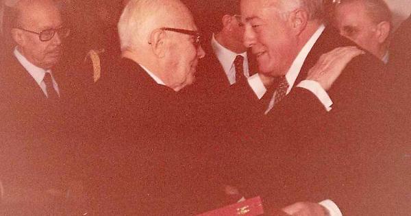 L'abbraccio tra il Presidente Pertini e l'allora sindaco di Foggia Rino Graziani (foto gentilmente concessaci dalla famiglia Graziani)