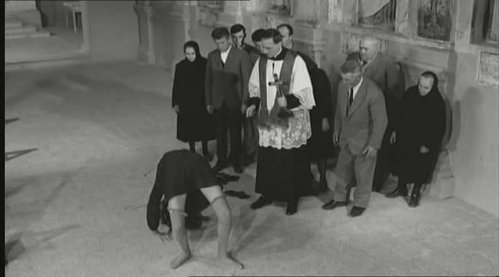 Gli unici che sembrano avere apparente pietà della poveretta sono il prete esorcista e le suore del convento, ove lei si recherà autonomamente dopo essere fuggita alla lapidazione dei contadini inferociti.