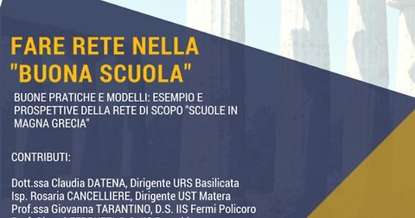 L’appuntamento è per domani, lunedì 8 maggio, alle ore 9 nell’auditorium dell’Istituto Fermi di Policoro dove si incontreranno i Dirigenti Scolastici di cinque licei delle antiche città magnogreche di Sibari, Heraclea, Metaponto e Taranto per discutere sul tema “Fare rete nella Buona Scuola. Pratiche e modelli: esempio e prospettive della rete di scopo Scuole in Magna Grecia”.