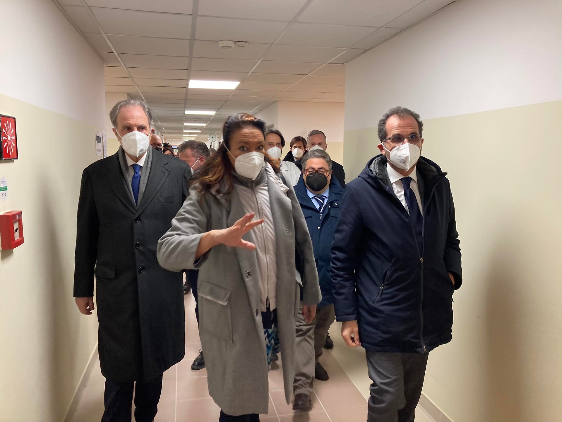 Il sottosegretario alla Salute, onorevole Marcello Gemmato, ha visitato questa mattina l’Ospedale Madonna delle Grazie di Matera. Gemmato è stato accolto dal Direttore Generale dell’Azienda Sanitaria Locale di Matera, Sabrina Pulvirenti, dal Direttore Sanitario, Giuseppe Magno, dal Presidente della Regione Basilicata, Vito Bardi, dall’assessore regionale, Cosimo Latronico, dai consiglieri regionali Piergiorgio Quarto e Tommaso Coviello. Insieme allo staff della direzione sanitaria ha percorso con interesse i reparti della struttura incontrando i medici, il personale in servizio ed i pazienti. Gemmato ha visitato il blocco operatorio del Madonna delle Grazie dove ha potuto apprezzare la moderna sala di emodinamica in cui si eseguono i trattamenti di cardiologia interventistica. La vista è proseguita nell’area materno-infantile dove sorgerà il nuovo blocco parto, i cui lavori sono già stati appaltati. Gemmato ha visto, inoltre, l’unità operativa complessa di chirurgia generale, e di medicina generale ed ha concluso la visita nel Pronto Soccorso dove il Direttore Generale, Pulvirenti, ha illustrato il progetto e le caratteristiche della nuova struttura, i cui lavori partiranno a breve e saranno ultimati entro 18 mesi.