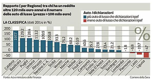 Ferrari, Jaguar, Lamborghini, Porsche ma i redditi sono inferiori ai 120mila annui