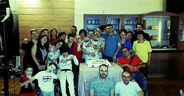 Un momento dei festeggiamenti del gruppo composto da volontari e disabili