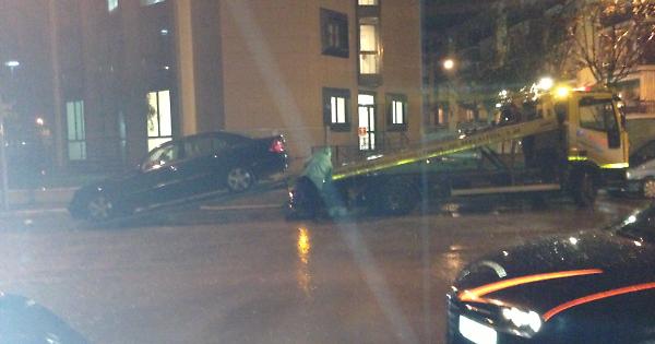 L'auto di Pontone mentre viene portata via dal carro attrezzi