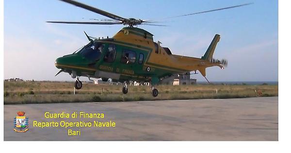 L'elicottero della Guardia di Finanza in volo sulla Puglia