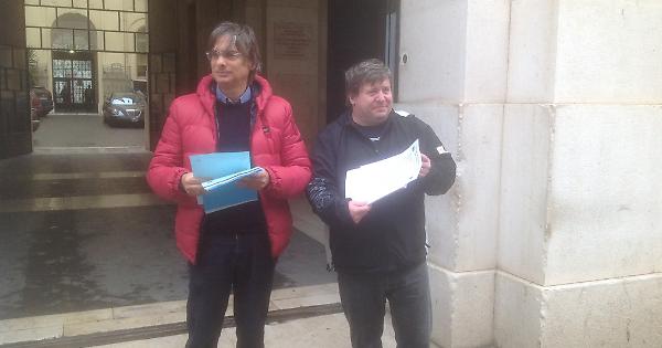 Michele Carota e Giuseppe Vigilante durante il volantinaggio vicino la Prefettura