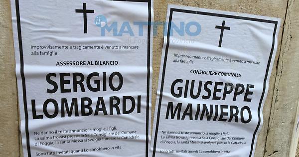 La data è quella di ieri: 23 ottobre 2014, ma l'affissione deve essere avvenuta in nottata perché solo questa mattina all'alba erano ben visibili i manifesti funebri attaccati all'ingresso della sede delle commissioni consiliari, di fronte al Comune, in Corso Garibaldi. Riportano il nome di Sergio Lombardi, assessore al Bilancio, e Giuseppe Mainiero, consigliere comunale, componente la commissione Bilancio. «Improvvisamente venuti a mancare...» recitano i manifesti che sono una incredibile, preoccupante, minaccia di morte agli esponenti istituzionali. Le ragioni? Apparentemente, non ve ne sono.
