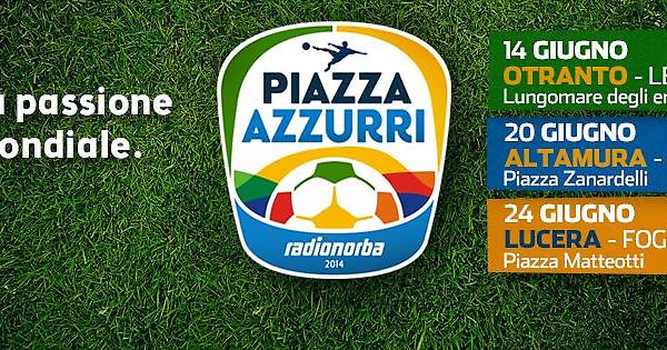 Le piazze dove farà tappa il truck di Radionorba, per l’occasione brandizzato in tricolore, verranno trasformate in un autentico villaggio azzurro, dove sarà possibile vedere le partite dell’Italia su un imponente maxischermo ad alta definizione e con un impianto audio-luci in grado di far vivere l’emozione dello stadio. Ma non è tutto, perché prima delle partite sono previste tre ore di sano divertimento: sarà infatti possibile partecipare a tornei di calcio balilla, posare davanti a una gigantografia della nazionale italiana e persino giocare a calcetto su un vero campo in erba sintetica da 3 contro 3. Per tutto il tempo, inoltre, si respirerà l’atmosfera gioiosa e festosa tipica del Carnevale di Rio: non mancherà, infatti, un corpo di ballo formato da ballerine brasiliane, che danzeranno sulle note di bossanova, samba e soul.