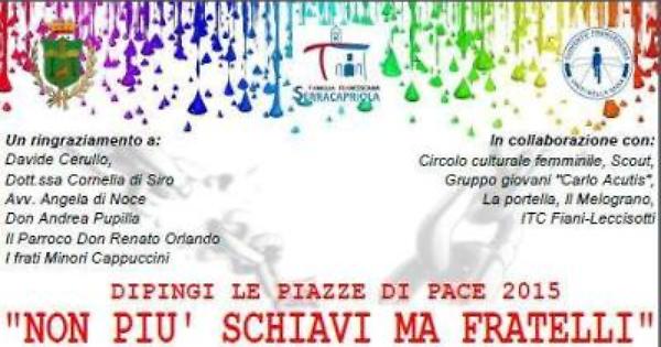 Torna anche quest’anno l’iniziativa “Dipingi le piazze di pace”, promossa dalla Gi.Fra – Gioventù Francescana nazionale per promuovere il valore della concordia e dell’intesa fra i popoli. L’edizione 2015 vedrà impegnate le fraternità locali nella riflessione sul tema “Non più schiavi ma fratelli”. Dal 7 febbraio e per tutto il mese, relatori e testimoni diretti faranno il punto su vecchie e nuove forme di schiavitù e storie di liberazione e riscatto.