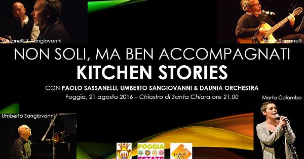 Il settimo appuntamento della variegata rassegna di otto spettacoli organizzata dall’Assessorato alla Cultura del Comune di Foggia all’interno del cartellone di Foggia Estate 2016 è dedicato alle ricette pugliesi e a tutto quello che gli alimenti e le tradizioni culinarie della nostra Regione portano con sé. Dopo le apprezzatissime e seguitissime serate di jazz, prosa, sinfonica, leggera, flamenco e opera lirica, “Non soli, ma ben accompagnati” propone per il penultimo appuntamento lo spettacolo Kitchen Stories, un viaggio di parole e musica alla scoperta di ciò che si nasconde dietro le ricette della cucina tradizionale pugliese. Ed ecco che poesie di grandi poeti e storie, insieme a ricordi e canzoni, diventano testimonianza di come poter miscelare ingredienti semplici ed unici, di come in ogni piatto si può rinvenire una leggenda che parla di uomini e scrittori, di come per ogni ricetta si possono raccontare anche amori... Leggi tutto
