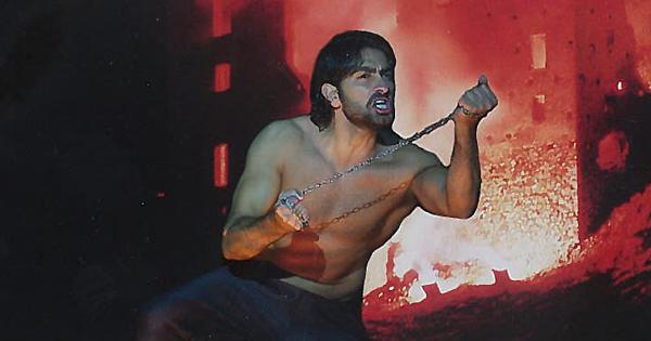 L'interprete di Crocco in un momento dello straordinario cinespettacolo
