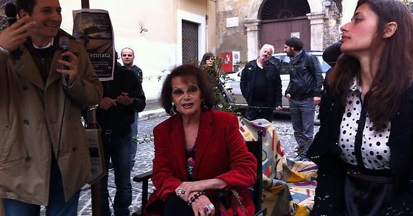 Claudia Cardinale alla conferenza stampa con, alla sua sinistra, Francesca Tasini e Sergio Assisi