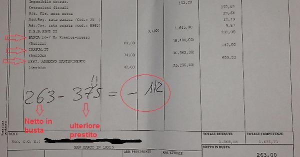 La busta paga dell'uomo da cui si evince la miseria con cui vive