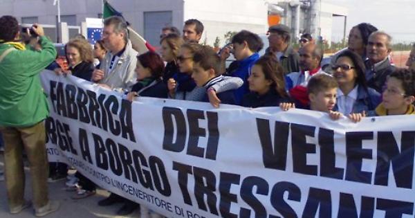 Una manifestazione contro l'inceneritore della Marcegaglia a Borgo Tressanti
