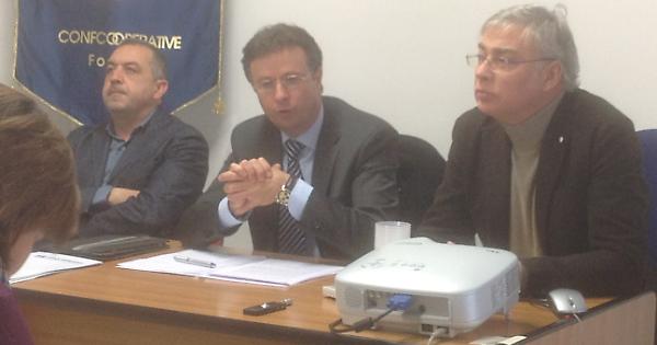 La conferenza stampa di Confcooperative. Da sinistra: Gargano, Mercuri, Cuttano