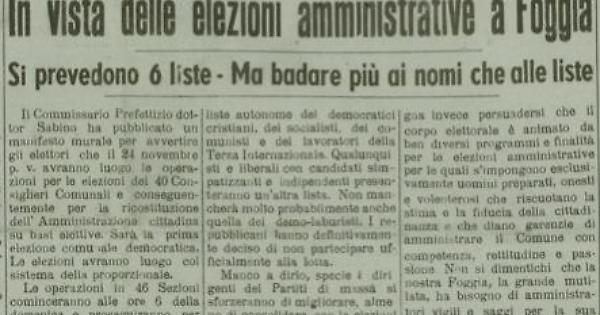 In quell’anno si tennero, oltre ovviamente alle elezioni politiche e referendarie del 2 giugno, le prime elezioni amministrative comunali dopo la caduta del fascismo e nelle quali votarono, per la prima, volta anche le donne. Sino ad allora i comuni erano retti da sindaci e giunte nominati dagli alleati.