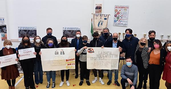 Una due giorni intensa all’insegna della legalità per l’IIS “Federico II” di Apricena, che martedì 29 marzo e venerdì 1 aprile ha ospitato due seminari: “La mafia uccide, il silenzio pure” con ospite Pinuccio Fazio (padre di Michele, giovane ucciso per errore a Bari vecchia) e “Il coraggio e l’esempio. In nome di Giovanni Panunzio e di tutte le vittime di mafia” che – con la moderazione di Dimitri Lioi - ha visto tra i relatori Giovanna Belluna Panunzio, Salvatore Borsellino (in videoconferenza), Paolo Mascione (vicepresidente associazione “Ultimi”), Luigi Talienti (Ds e volontario presso il penitenziario di Foggia), Leonardo Palmisano (sociologo) e l’europarlamentare Mario Furore.