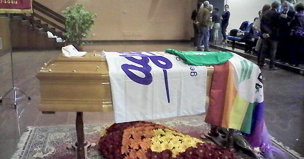 Il feretro nella sala Amgas, dove è avvenuta la commemorazione