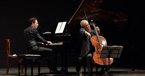 Al pianoforte Giuseppe Andaloro, al violoncello Giovanni Sollima