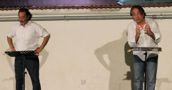 Da sinistra, Mario Pierrotti e Michele D'Errico durante uno degli spettacoli