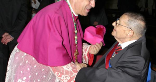 Giuseppe Fiore con l'arcivescovo di Foggia, Tamburrino (Ph. Maizzi)