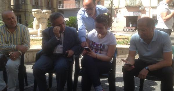 Il sindaco Mongelli, Francesca Laquaglia, l'assessore Ferrandino guidati da Parente durante la connessione